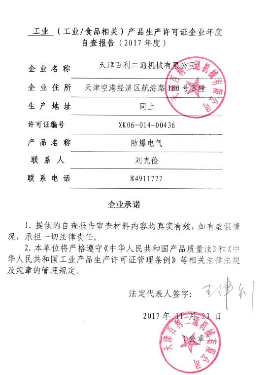 全國工業(yè)產(chǎn)品生產(chǎn)許可證2017年自查報告