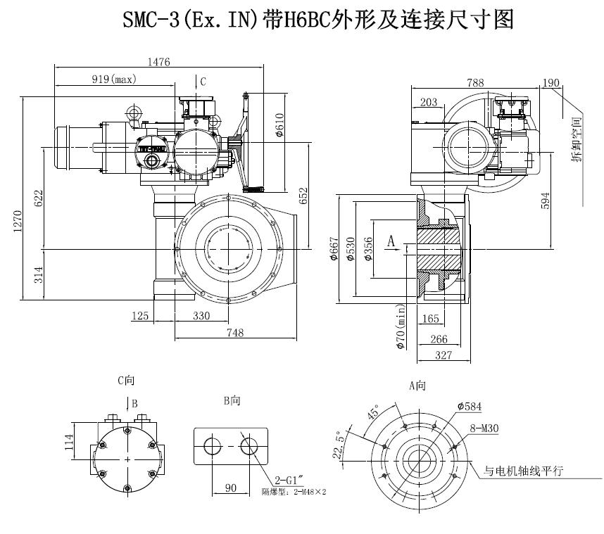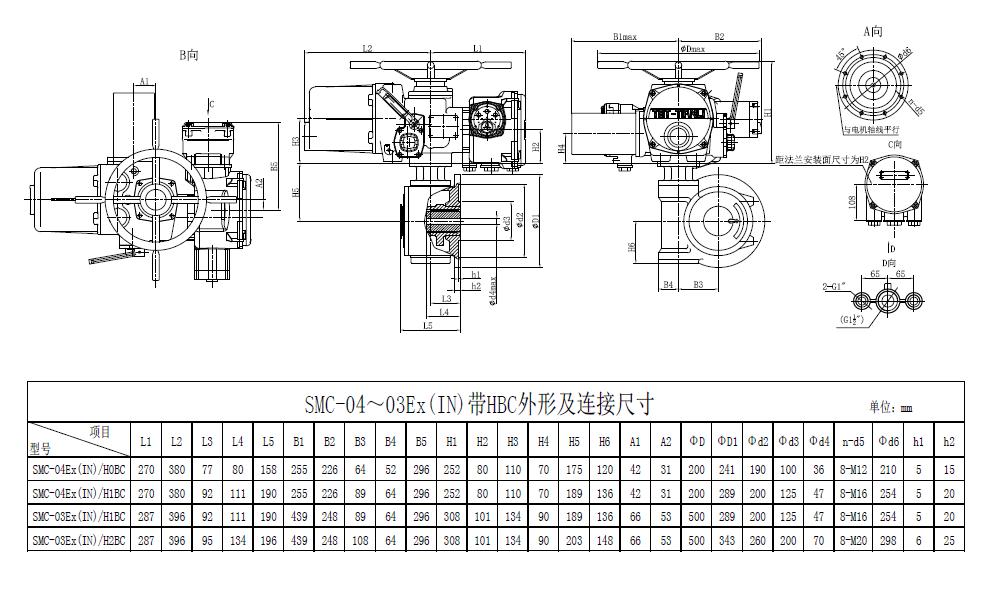 SMC/HBC系列電動(dòng)裝置是SMC系列多回轉(zhuǎn)電動(dòng)裝置與HBC蝸輪減速器的組合型式,它適合球閥、蝶閥等部分回轉(zhuǎn)閥門的驅(qū)動(dòng)控制。SMC/HBC電動(dòng)裝置具有以下特點(diǎn):結(jié)構(gòu)設(shè)計(jì)堅(jiān)固可靠,產(chǎn)品規(guī)格齊全,驅(qū)動(dòng)轉(zhuǎn)矩范圍大且動(dòng)力輸出穩(wěn)定, 具有良好的自鎖性能。 HBC輸出軸結(jié)構(gòu)獨(dú)特,裝有與閥桿連接的漸開線花鍵接頭,產(chǎn)品的安裝調(diào)試方便。