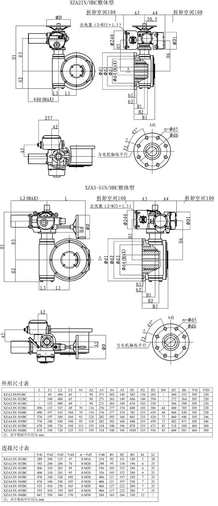 XZA-HBC整體型產(chǎn)品外形及連接尺寸