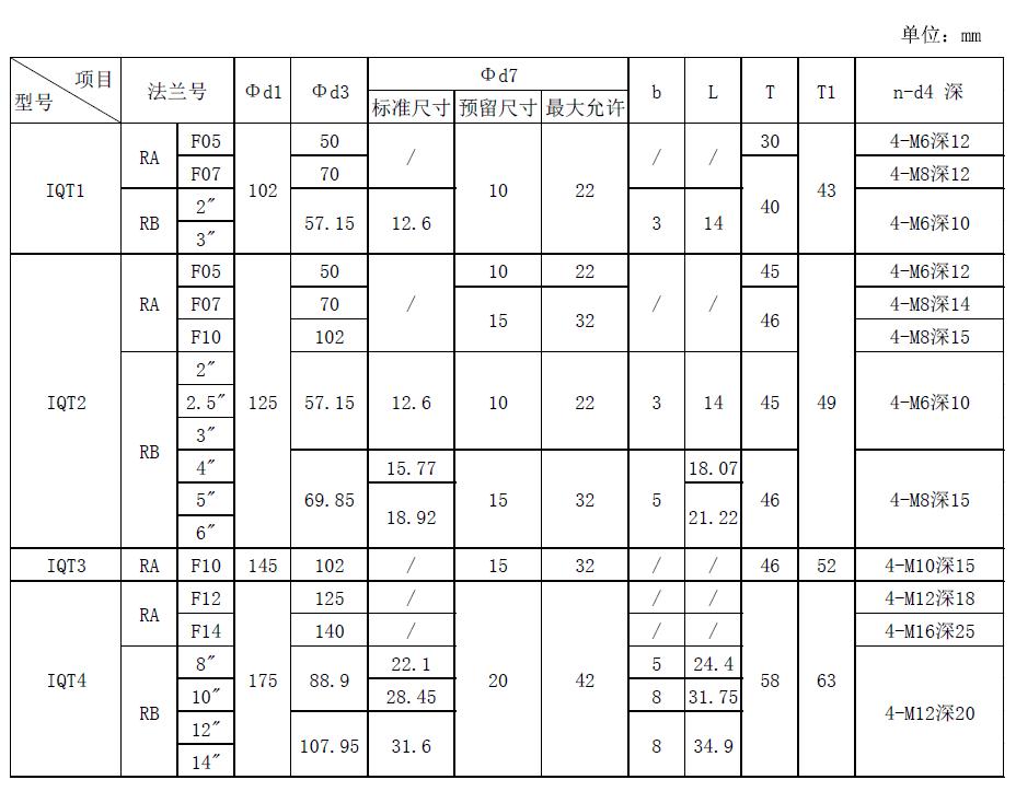 IQT1~IQT4/JS(220V單相電機)系列技術(shù)參數(shù)表