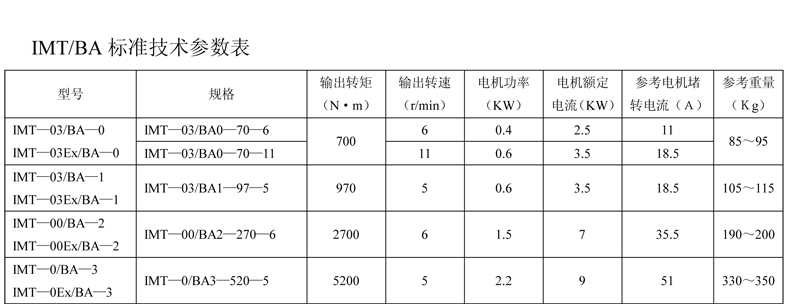 IMT/BA系列智能型電動裝置是IMT系列中小轉(zhuǎn)矩多回轉(zhuǎn)智能型電動裝置與BA圓錐齒輪減速器的一種組合型式,它適合閘閥、截止閥等多回轉(zhuǎn)閥門的驅(qū)動控制。IMT/BA智能型電動裝置具有以下特點:以較小轉(zhuǎn)矩規(guī)格的IMT電動裝置與BA減速器組合可獲得更大的輸出轉(zhuǎn)矩。在輸出轉(zhuǎn)速允許的條件下,選用該產(chǎn)品能夠提高所選電動裝置規(guī)格的通用性,便于產(chǎn)品的使用、維護。