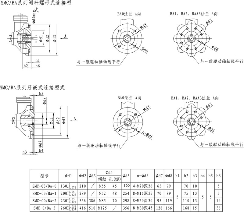 SMC-BA系列牙嵌及閥桿螺母連接尺寸