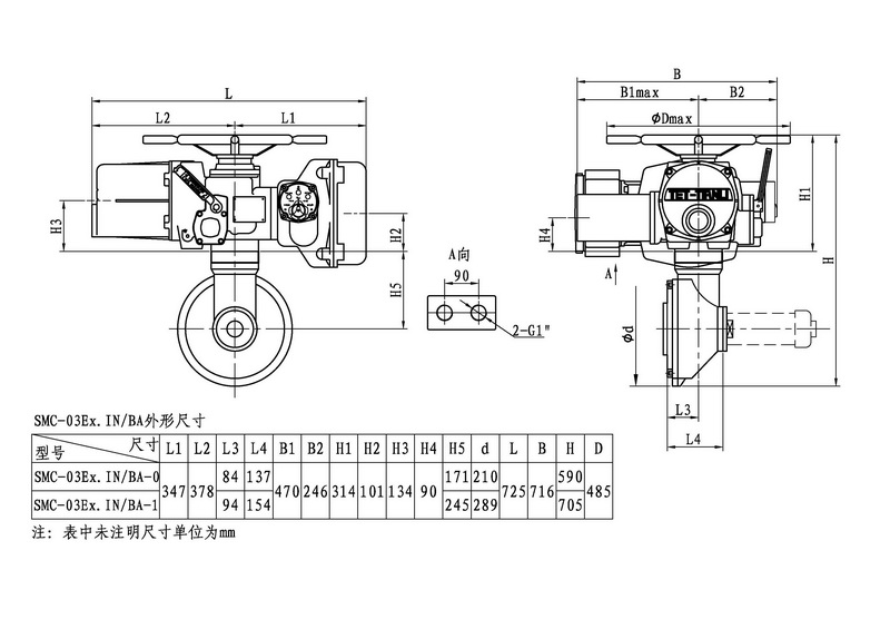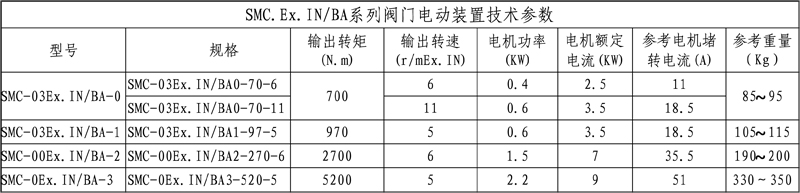 SMC/BA系列電動裝置是SMC系列中小轉矩多回轉電動裝置與BA圓錐齒輪減速器的一種組合型式,它適合閘閥、截止閥等多回轉閥門的驅動控制。SMC/BA電動裝置具有以下特點:以較小轉矩規(guī)格的SMC電動裝置與BA減速器組合可獲得更大的輸出轉矩。在輸出轉速允許的條件下,選用該產(chǎn)品能夠提高所選電動裝置規(guī)格的通用性,便于產(chǎn)品的使用、維護。