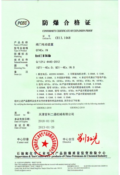 QT1~QT4型部分回轉(zhuǎn)閥門電動(dòng)裝置是我公司最新研制的換代型產(chǎn)品。適用于控制蝶閥、球閥、旋塞閥等做90°回轉(zhuǎn)的閥門。該產(chǎn)品替代同規(guī)格的QB系列產(chǎn)品,體積小、重量輕、具有高效率、高可靠性、高防護(hù)性能、低噪音等特點(diǎn)。可現(xiàn)場(chǎng)操作,也可遠(yuǎn)距離控制??蓮V泛用于石油、化工、發(fā)電廠、水處理、造紙等各行業(yè)。該產(chǎn)品的防護(hù)等級(jí)為IP67,隔爆型產(chǎn)品(型號(hào)中有Ex)的隔爆等級(jí)為dⅡBT4。