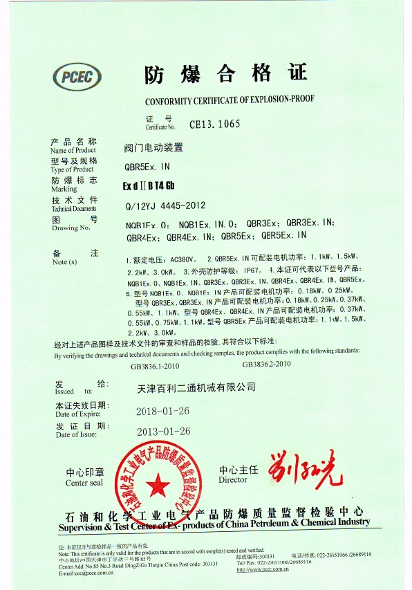QBR3~QBR5是我公司研制的部分回轉閥門電動裝置,控制轉矩范圍:900N.m~12000N.m。該電動裝置可與球閥﹑蝶閥等閥瓣做90°回轉的閥門組合成電動閥門,其功能是控制閥門的啟閉。該電動裝置能夠進行單機或多機室內(nèi)控制遠距離控制電動操作和現(xiàn)場手動或電動操作,可廣泛地應用在具有管道閥門的工業(yè)系統(tǒng)。該產(chǎn)品的防護等級為IP67,隔爆型產(chǎn)品(型號中有Ex)的隔爆等級 為dⅡBT4。